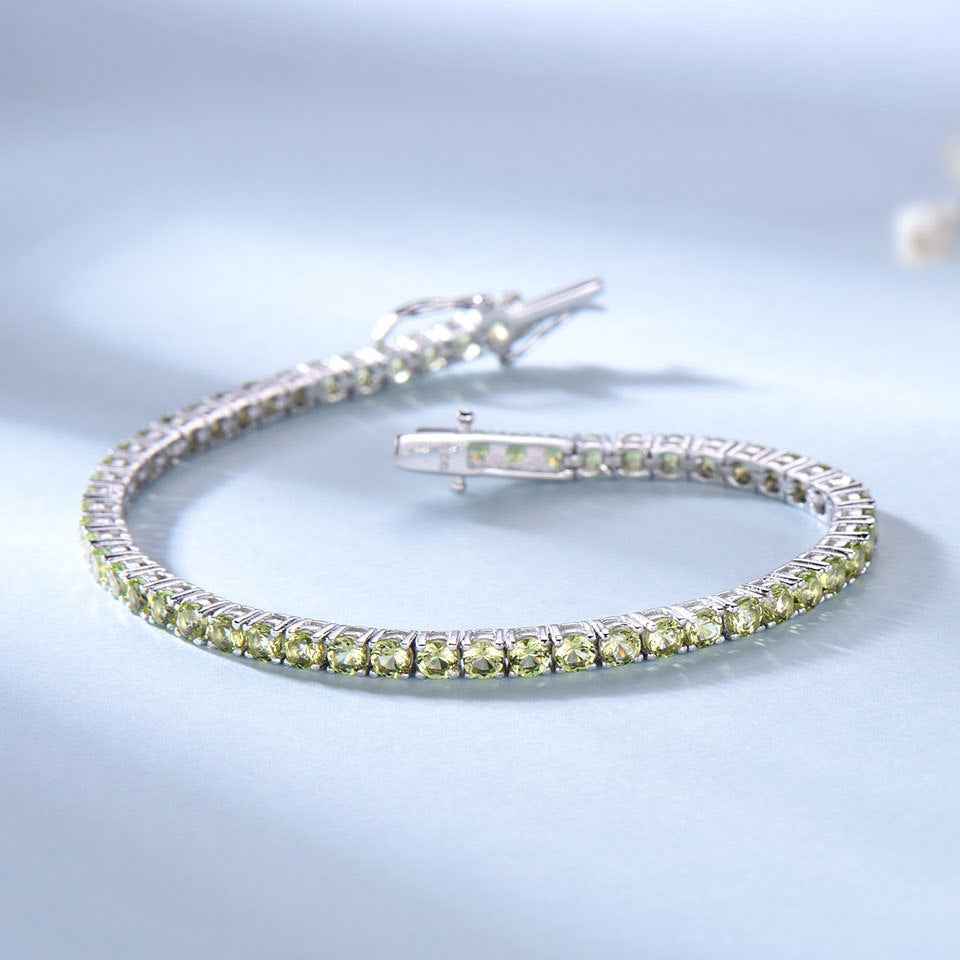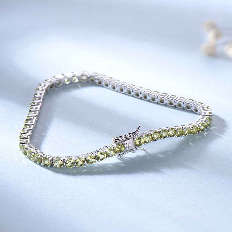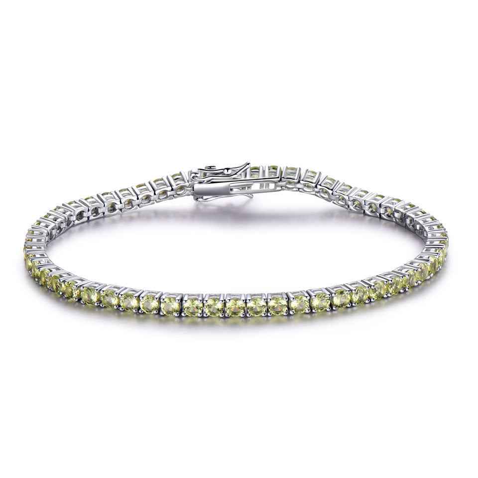 Sterling Silver Full Of CRYSTALS Luxury Peridot Bracelet , A Sterling Silver Luxury Peridot Bracelet, adorned with dazzling diamonds, radiating opulence and sophistication with its exquisite blend of shimmering gemstones. - Silver
