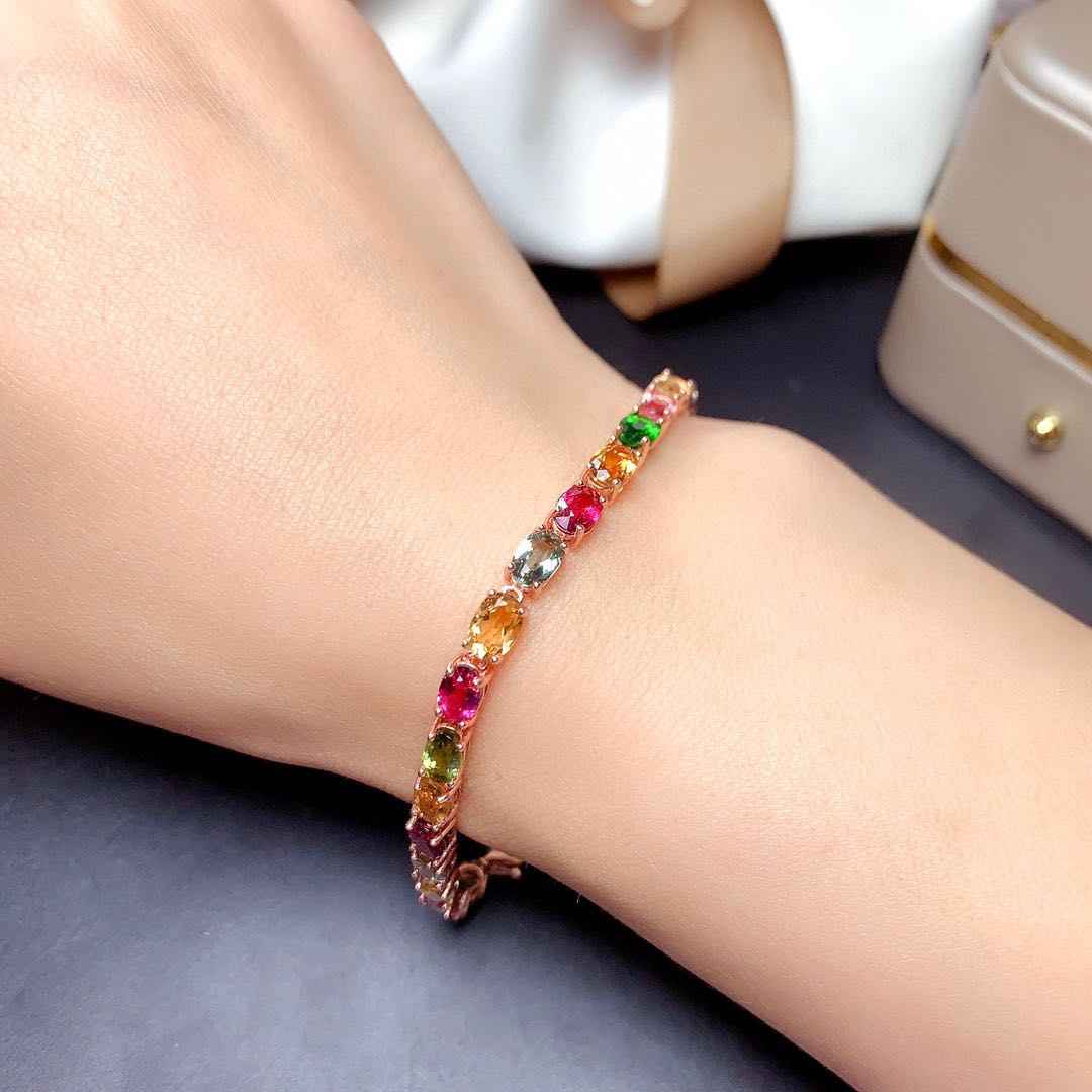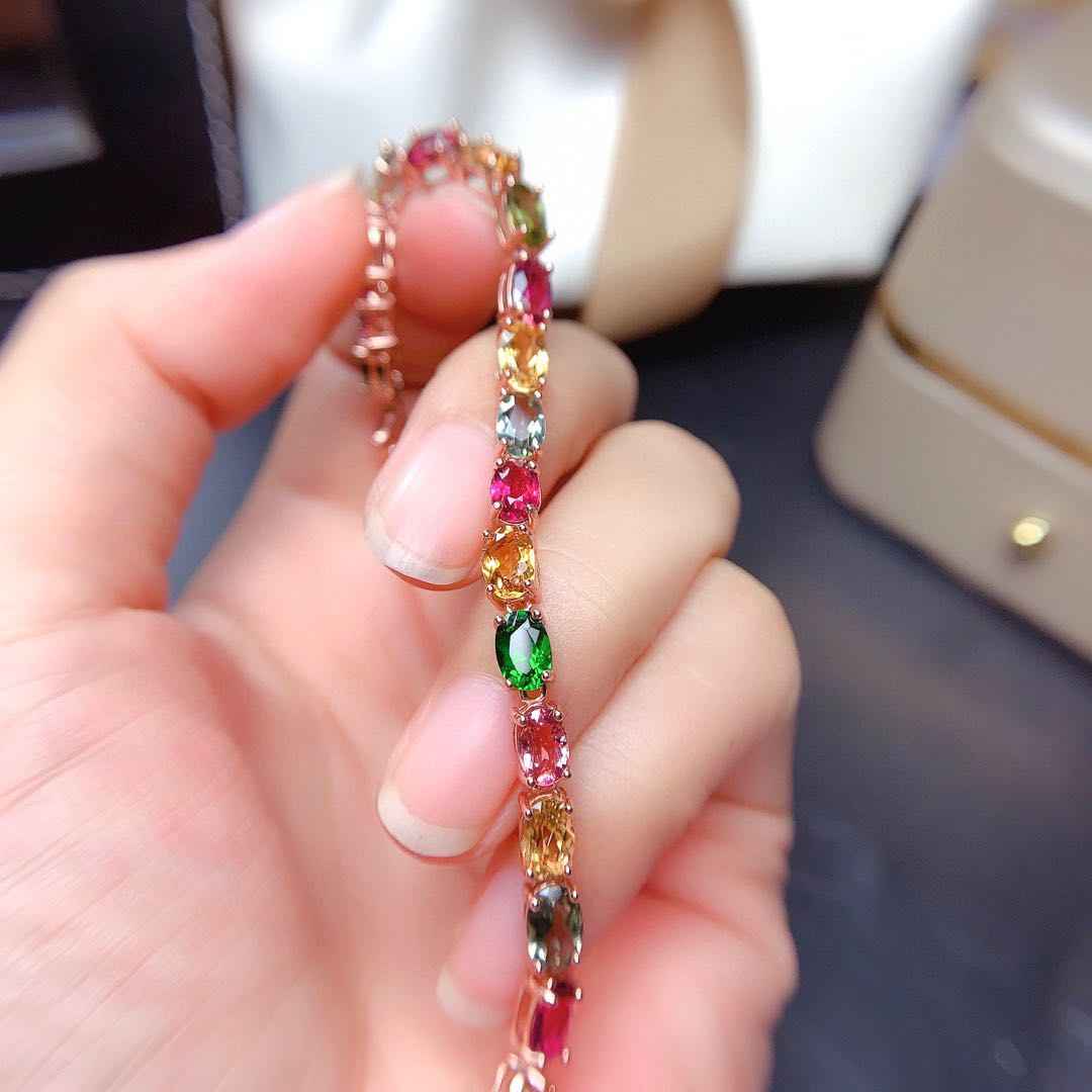 This bracelet is an excellent choice for individuals who appreciate both beauty and functionality in their jewelry. Its versatility allows it to be paired with other accessories or worn alone as a focal point. The gentle shine of the sterling silver complements the bright tourmaline colors, making this bracelet a must-have addition to any jewelry collection.