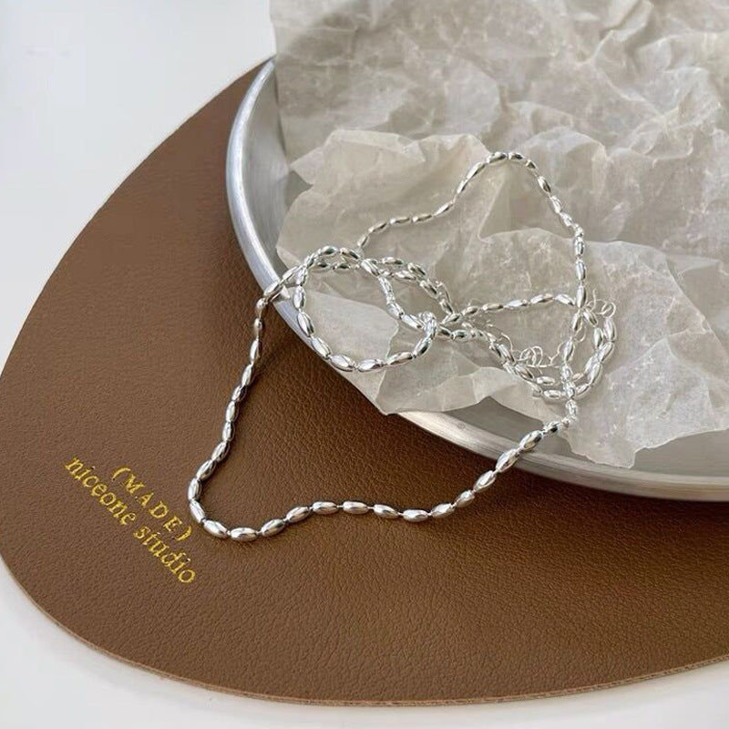 This stunning necklace showcases S925 Sterling Silver beads shaped like grains of rice, beads. The harmonious blend of these elements creates a timeless piece that exudes both grace and modernity, perfect for any occasion. Hypoallergenic and crafted for comfort, this necklace is a versatile addition to any jewelry collection.