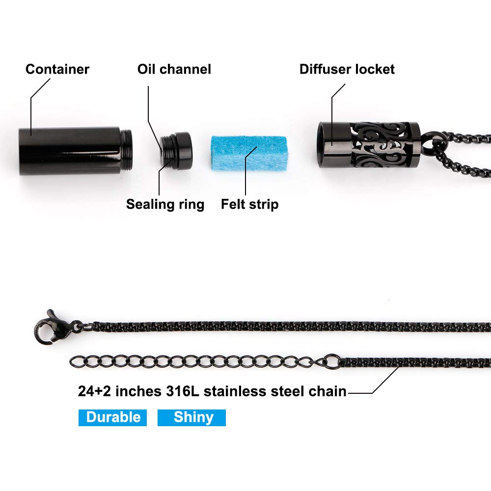 High Quality Material: The surface of the aromatherapy necklace is processed by advanced electroplating process, the exquisite workmanship makes the mens pendant necklaces evenly colored with smooth edges. The men's diffuser necklace made of anti-allergic 316L stainless steel material is waterproof, long-lasting and durable. Harmless to your skin and health, providing you with a comfortable wearing experience.