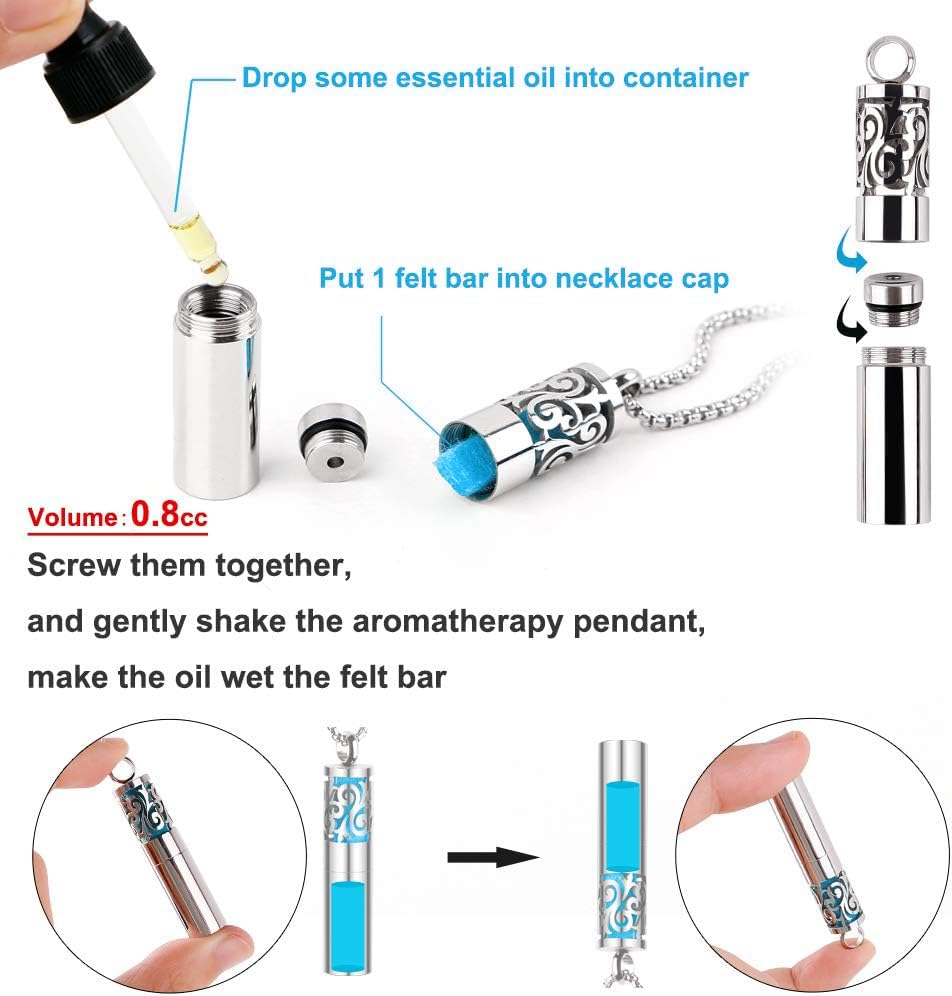 Aromatherapy necklace gift set: Aromatherapy helps you relieve stress and anxiety, heal a tired mind, and improve poor sleep. The essential oil diffuser necklace for women or men is an ideal gift for essential oil lovers on birthdays, Valentine's Day, anniversaries, Christmas, Mother's Day, Father's Day.