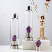 The Natural Crystal Water Bottle is a stunning blend of utility and aesthetics designed for anyone looking to enhance their hydration experience. This innovative glass water bottle is not just a vessel for water; it's a means to infuse your hydration routine with the unique energies of natural crystals. Crafted with care, each bottle features a hollow compartment that securely holds an array of crystals, allowing their natural properties to infuse with the water you drink.