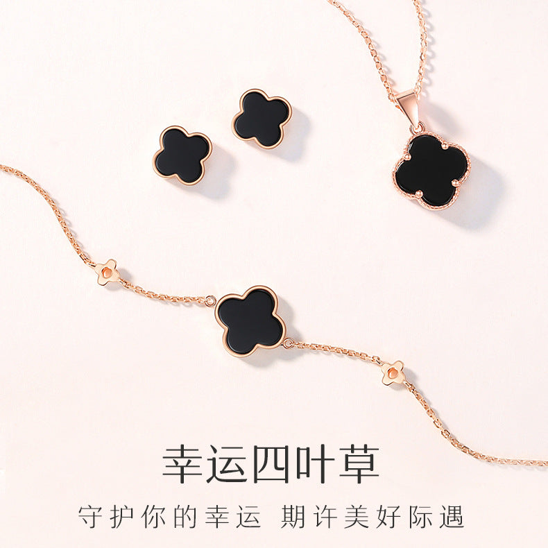 Inform when this item available S925 Silver agate stone four-leaf clover earrings female light luxury flower temperament earrings niche sterling silver high-grade sense earrings tide
